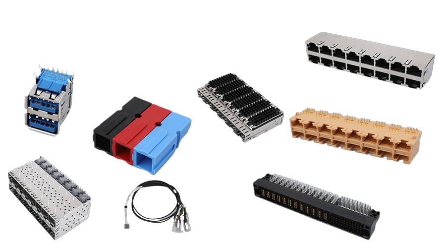 網(wǎng)絡(luò)連接器 (集成RJ45系列和普通RJ45系列)、高速連接器(SFP/QSFP/DSFP/CFP系列)、電源連接器、高速DAC和背板高速線纜組件、BTB連接器、網(wǎng)絡(luò)變壓器、RJ11連接器系列、USB&TYPE-C系列、精密五金件等。公司產(chǎn)品廣泛應(yīng)用于包括“5G/6G”在內(nèi)的網(wǎng)絡(luò)、通訊等行業(yè),并致力于滿足新能源汽車、高端裝備、智能顯示、軌道交通、機器人等高精尖終端領(lǐng)域?qū)B接器市場的需求。